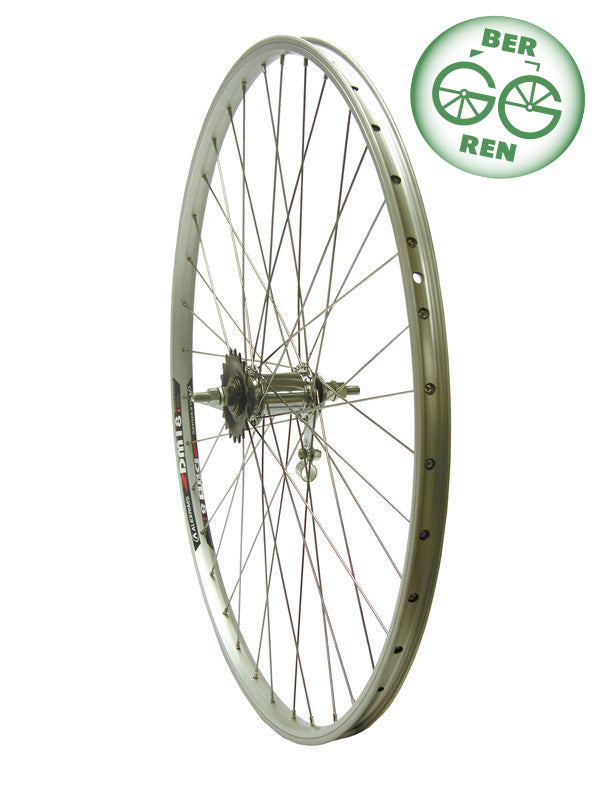 28" TAKAKIEKKO ALEX ACE 17 / SHIMANO 18-622 1-V, ALUMIINI, HOPEA – jalkajarrullinen city- ja vakiopyörän takapyörä